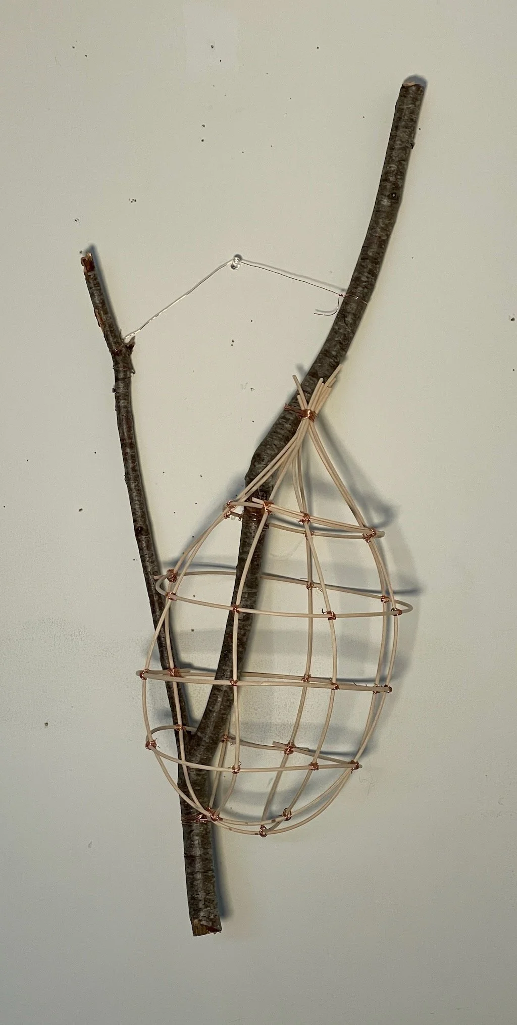 Holding Space - Flax roving, dyed wool, waxed linen thread, reed, tree branch